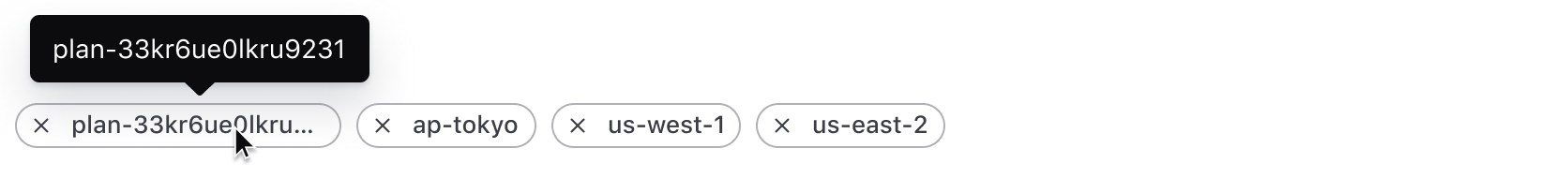 Tags can display about 20 characters maximum before the text becomes automatically truncated. When truncated, the full text will display in a Tooltip that appears when the user hovers or focuses the Tag. This Tooltip displays above the Tag by default; however, the placement can be customized.